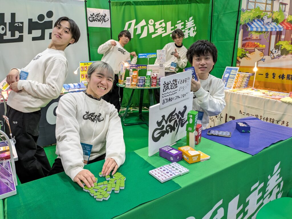 『タイパ至上主義シリーズ』でおなじみのメーカーさんです。BGBEには初めての出展だと思いますが、『タイパ至上主義 麻雀』の緑と同じ装飾が目を引いてたくさんのお客さんが来ていました。