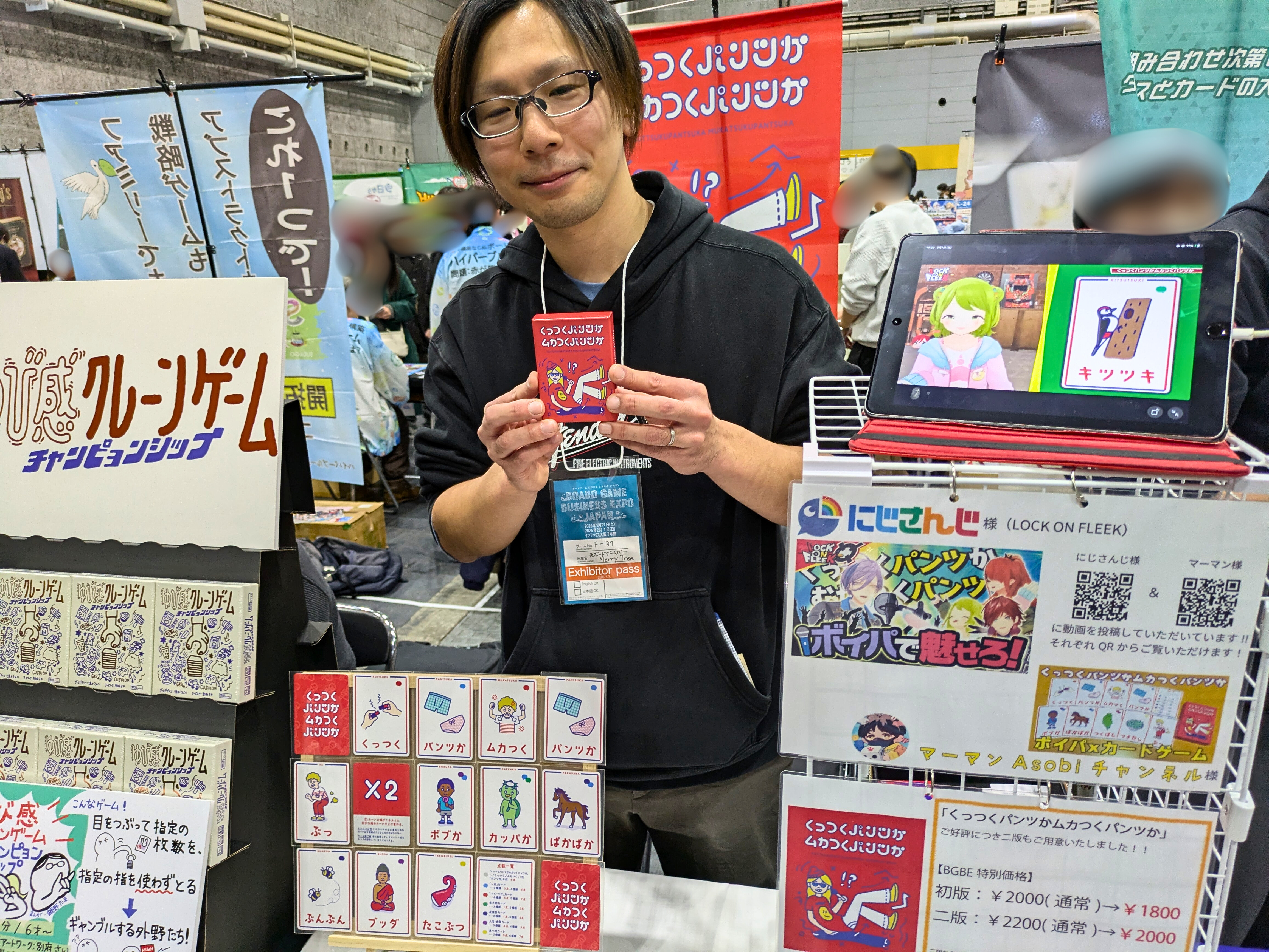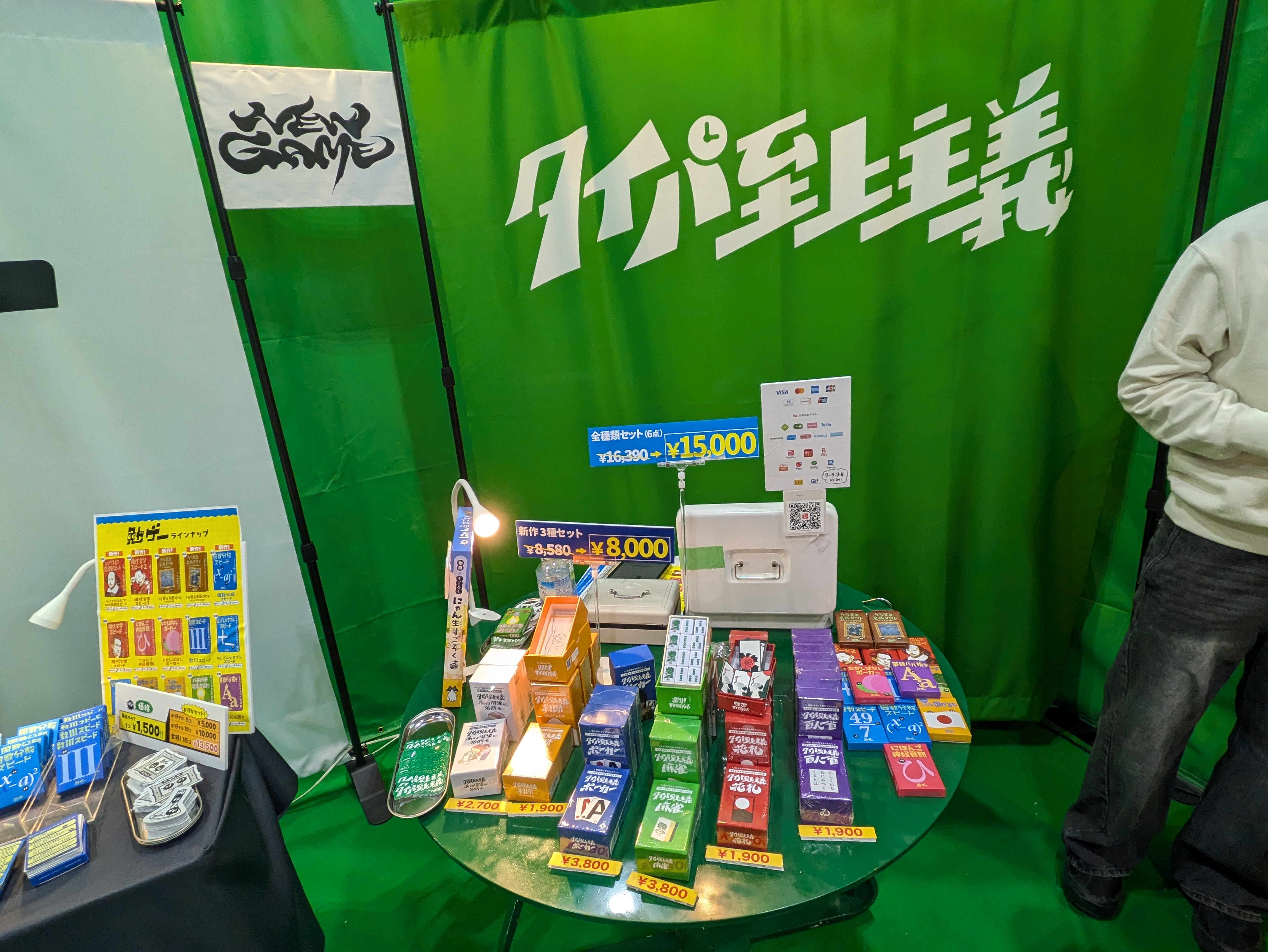 『タイパ至上主義シリーズ』でおなじみのメーカーさんです。BGBEには初めての出展だと思いますが、『タイパ至上主義 麻雀』の緑と同じ装飾が目を引いてたくさんのお客さんが来ていました。