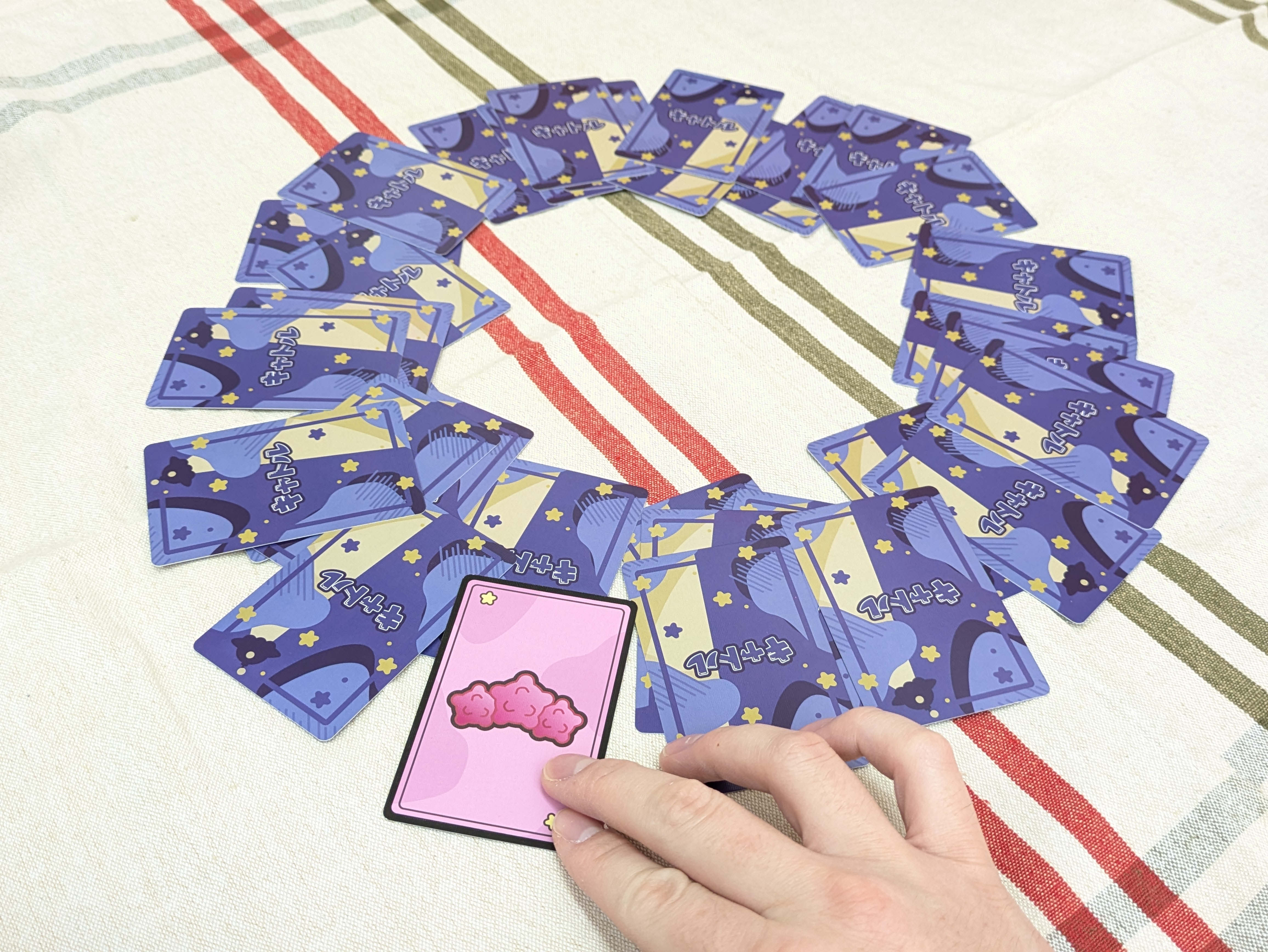 残ったカードは裏向きにのまま円形にし、山札とします。
