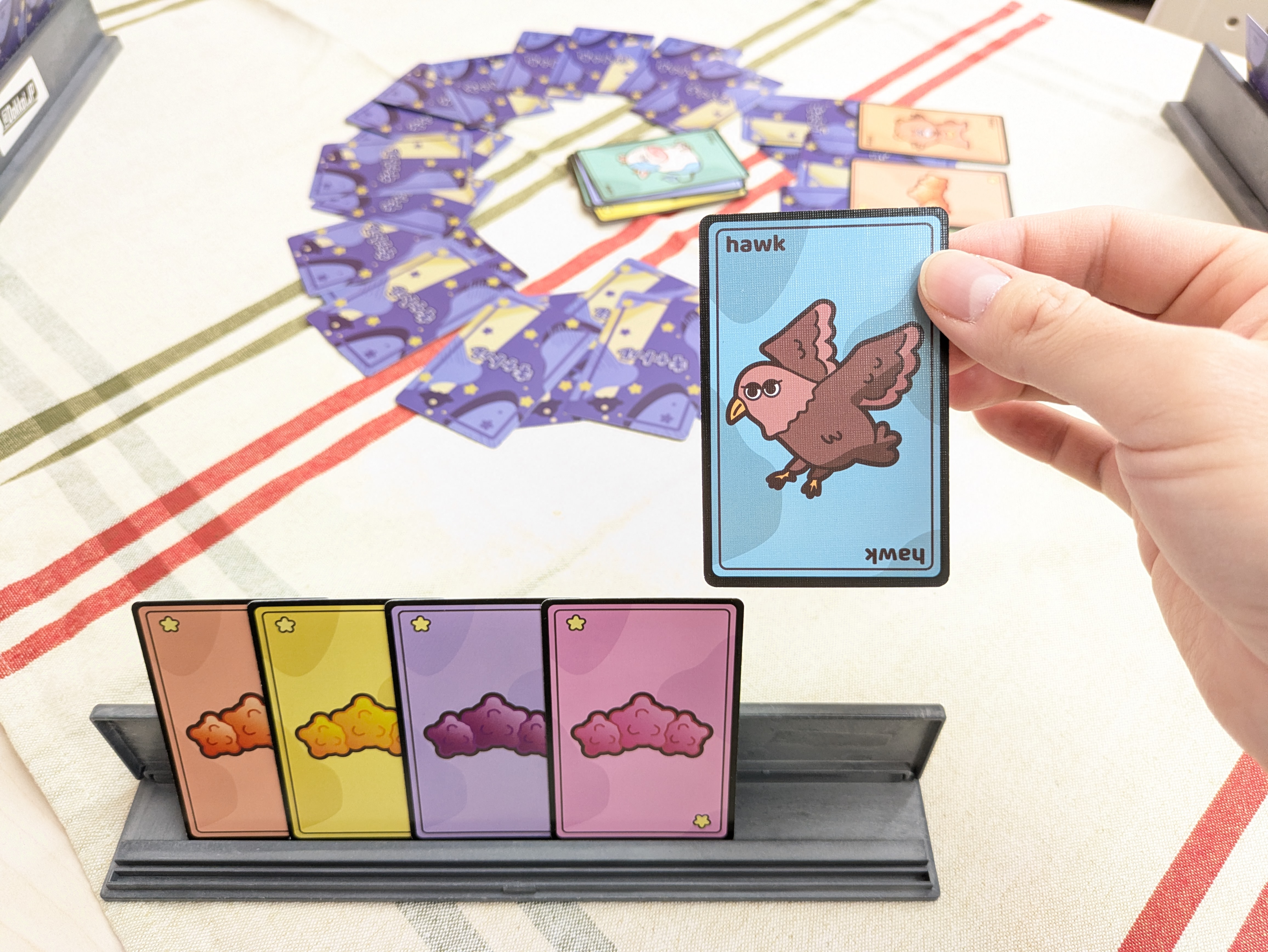 タカで手札を自分の物にしたり、クマで捨て札にさせたりと、カードの効果を上手く使って有利に運ぶことができます。