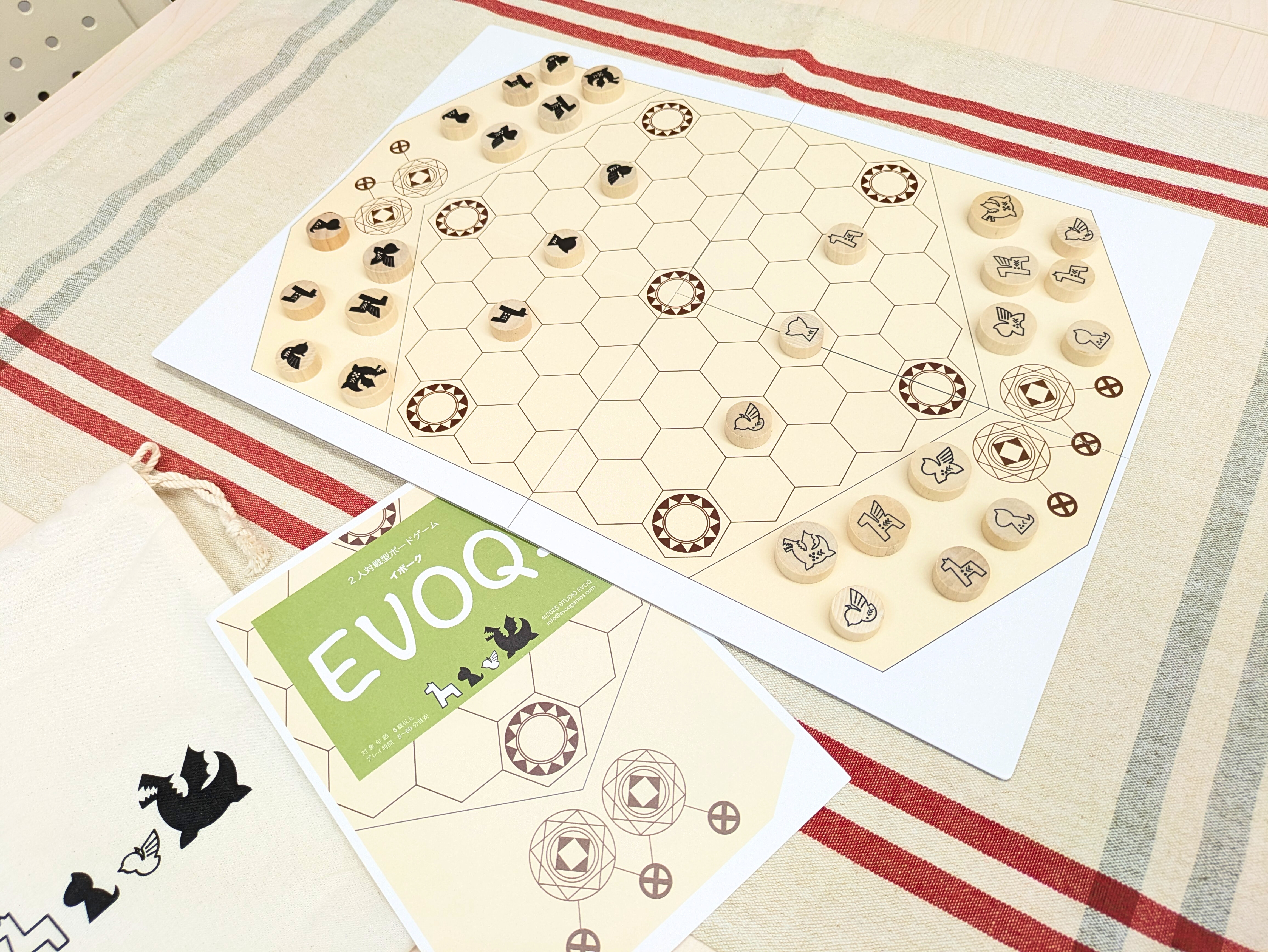 EVOQ!は、幻獣召喚や魔法といったファンタジー世界をテーマにした将棋に似た2人対戦ゲームです。