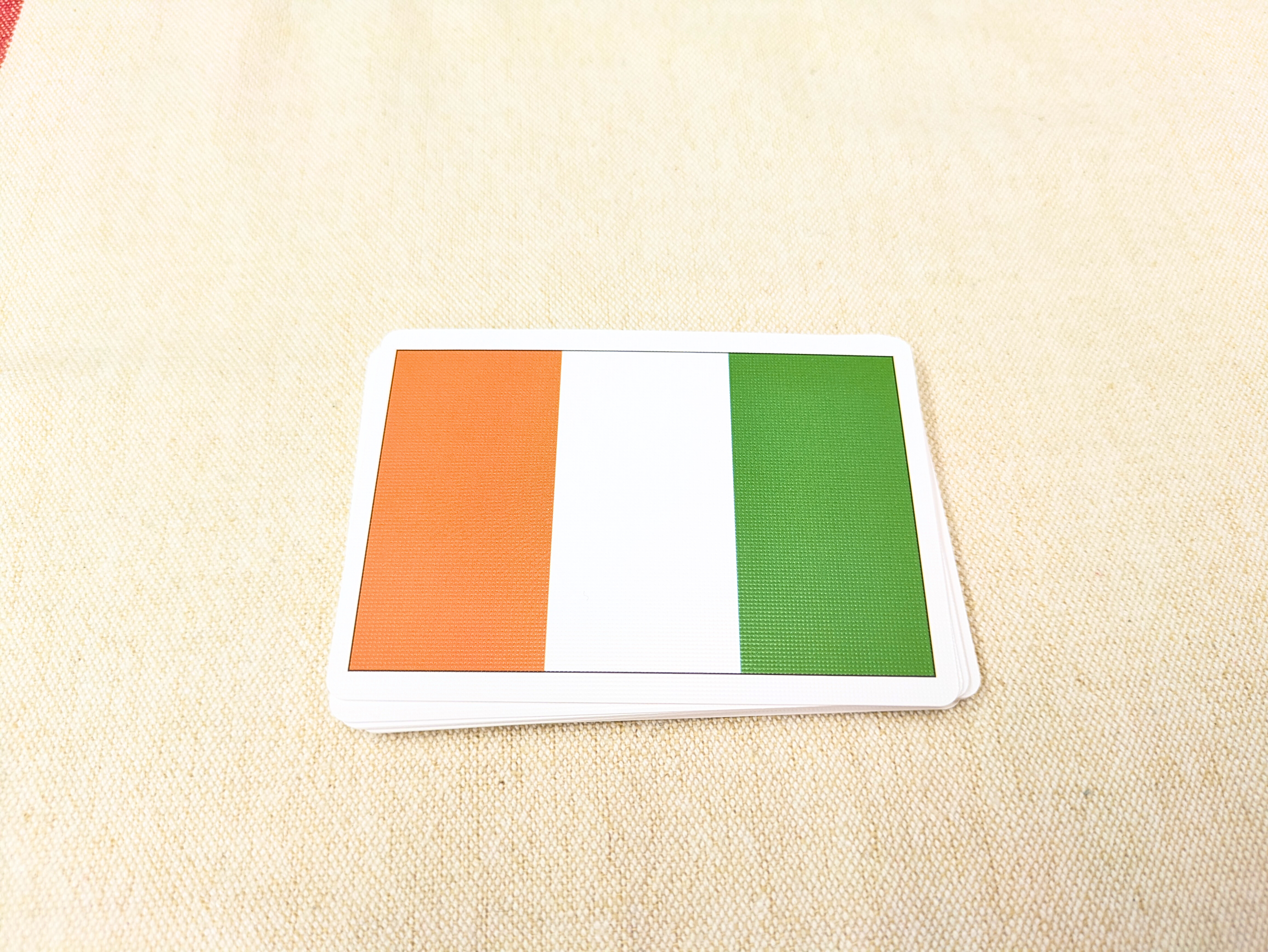 お題カードを裏向きにしてよく混ぜ、数枚選んで山札とします。 - ③国旗カードを取る