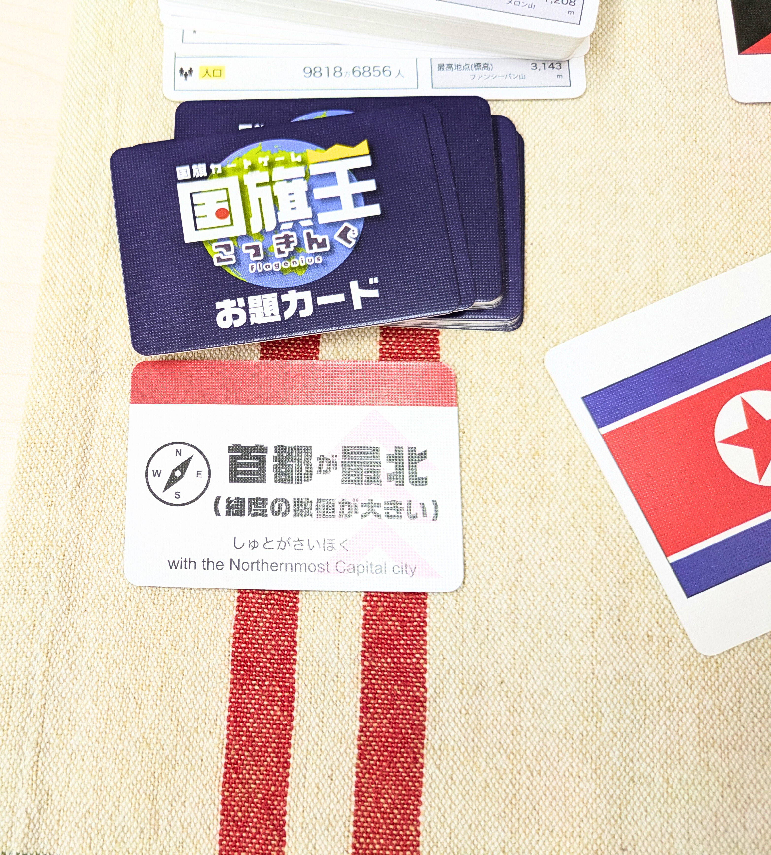 国旗王は、お題に沿った国を手元にある国から選んで勝負する国旗カードゲームです。