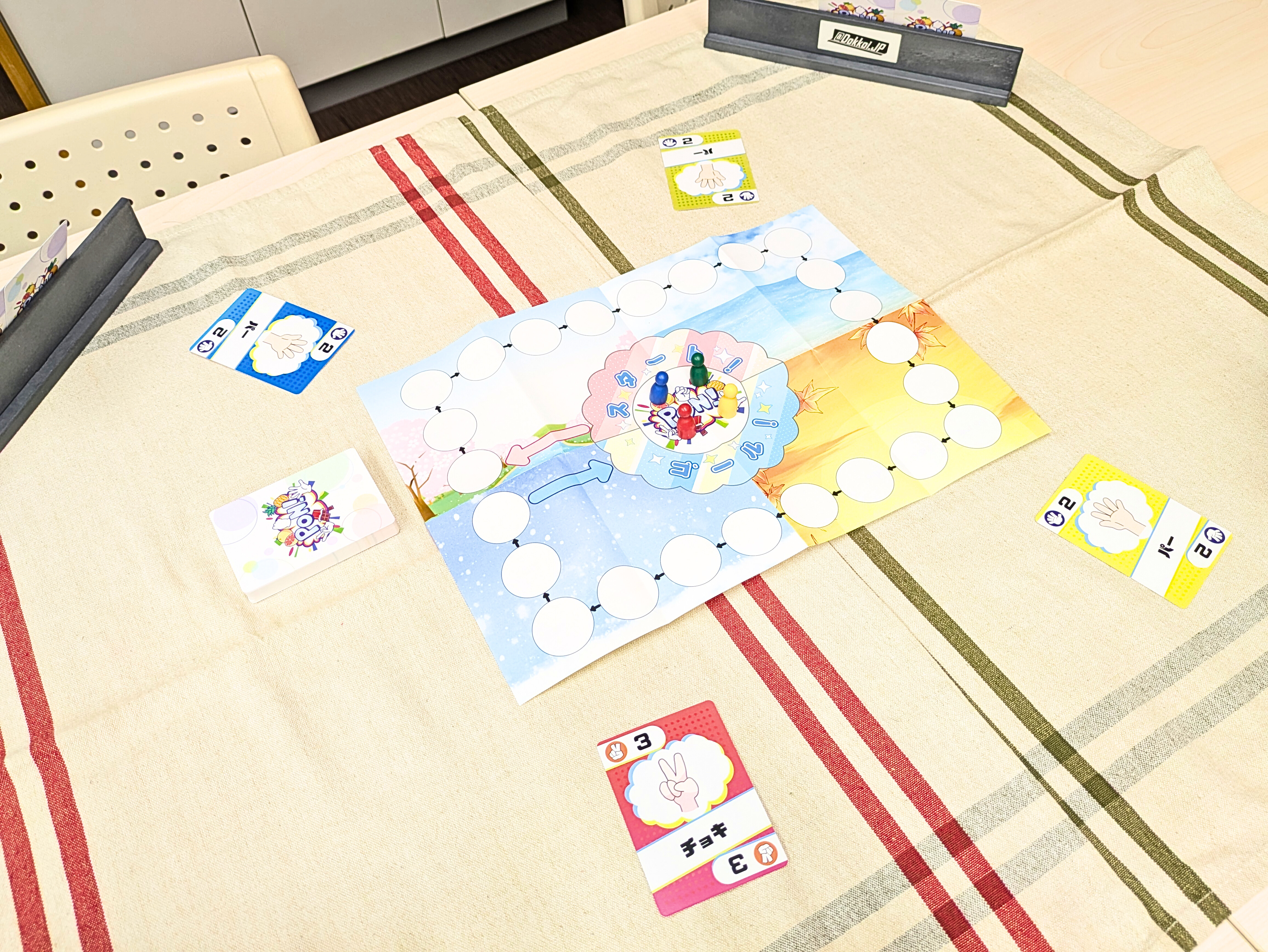 じゃんけんに勝てば単語の文字数分進めるというシンプルなルールなので、大人も子どももすぐに遊べます。