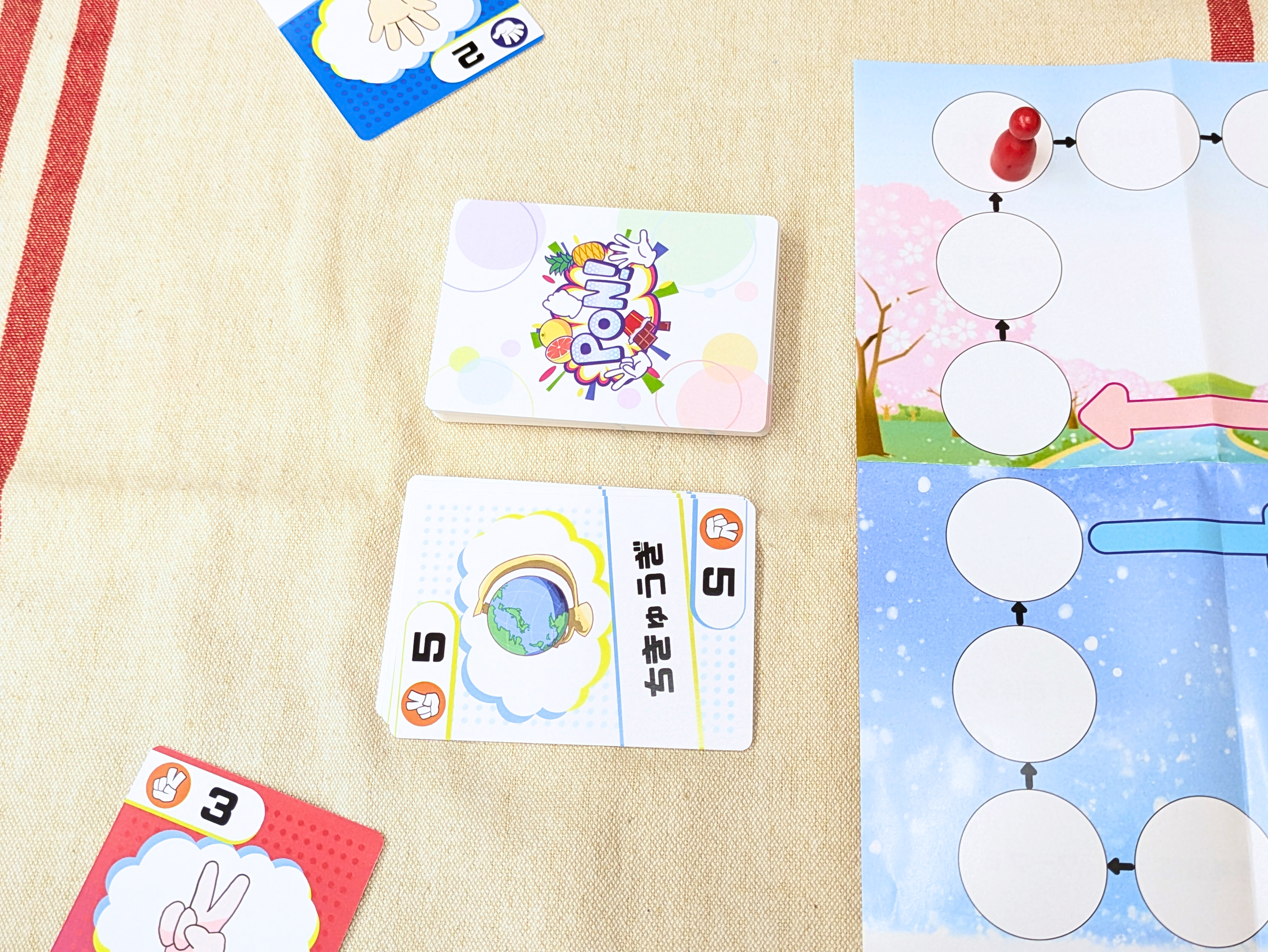 じゃんけんに勝てば単語の文字数分進めるというシンプルなルールなので、大人も子どももすぐに遊べます。